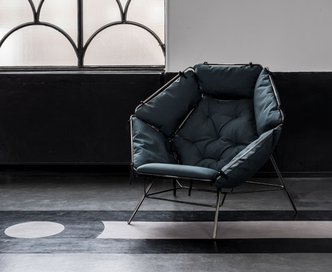 Tine Riisbøll (pictured left) has designed a chair called ‘REST in beats’. Trine describes it as a resting chair with built-in loudspeakers in the head cushions. You can listen to meditation music, an e-book or your favourite music while relaxing. Her inspiration is mostly from H. J. Wegner’s Flag Halyard chain and the geometry of a dome. The chair was displayed at Milan Design Week 2018, where Daniel Jakob Freestone and I made an ambient soundtrack for the purpose.